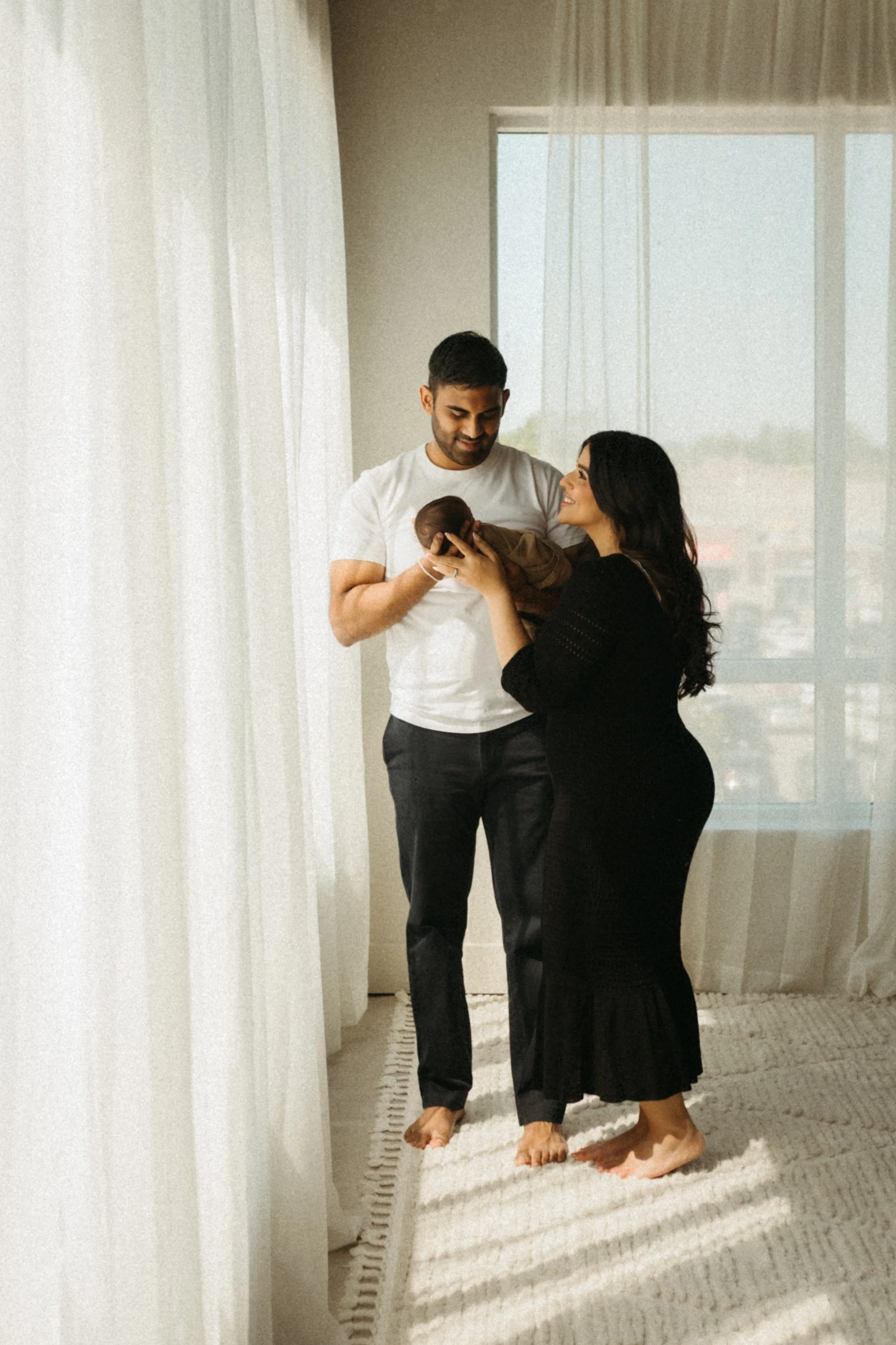 I’ll send styling tips before your session, but simple, neutral clothing often photographs beautifully. Soft fabrics, layers, and muted tones keep the focus on connection and your baby. If brighter colours or statement pieces feel more like you, we can absolutely create bold, editorial-style images that still fit the timeless feel of your gallery.